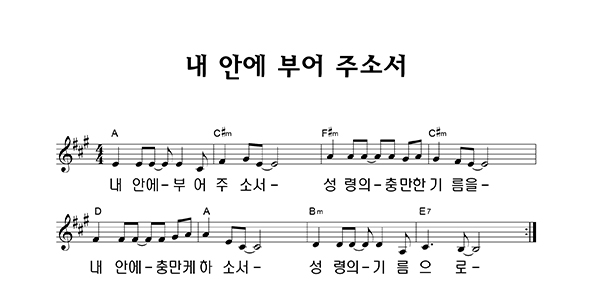 | 내 안에 부어 주소서 | 단선 |