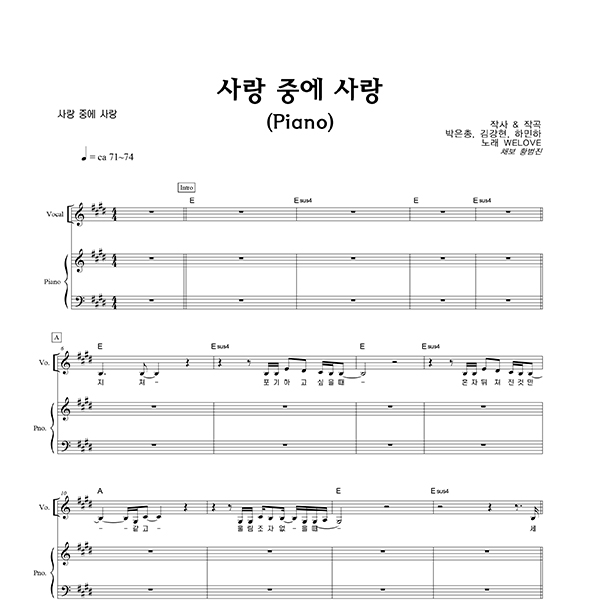 | 사랑 중에 사랑 | 성가 3부 + 피아노 반주 |
