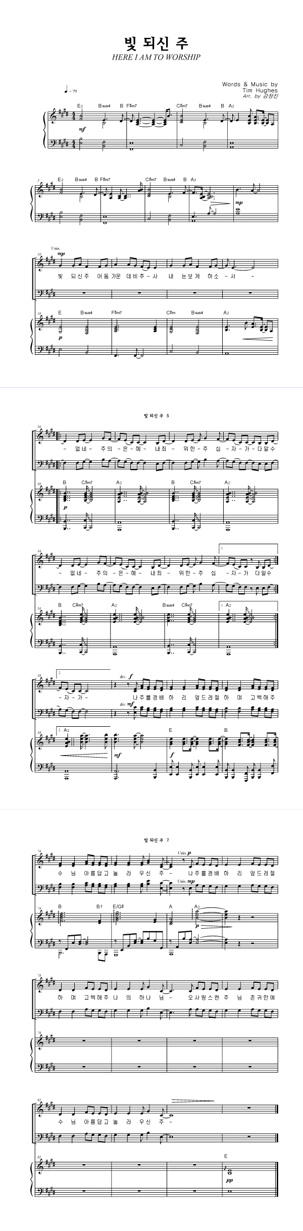 | 빛되신 주 | 성가 4부 + 피아노 반주 |