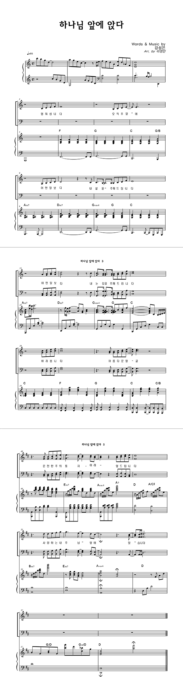 | 하나님 앞에 앉다 | 성가 3부 + 피아노 반주 |
