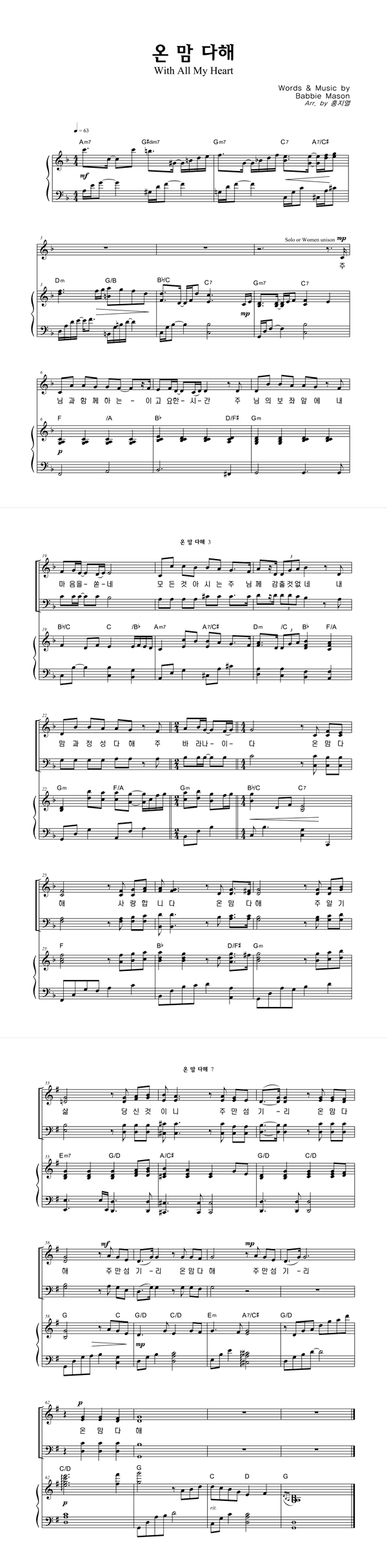 | 온 맘 다해 | 성가 4부 + 피아노 반주 |