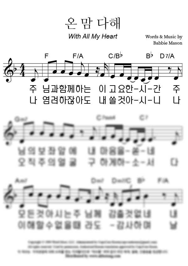 | 온 맘 다해 | 성가 2부 + 피아노 반주 |