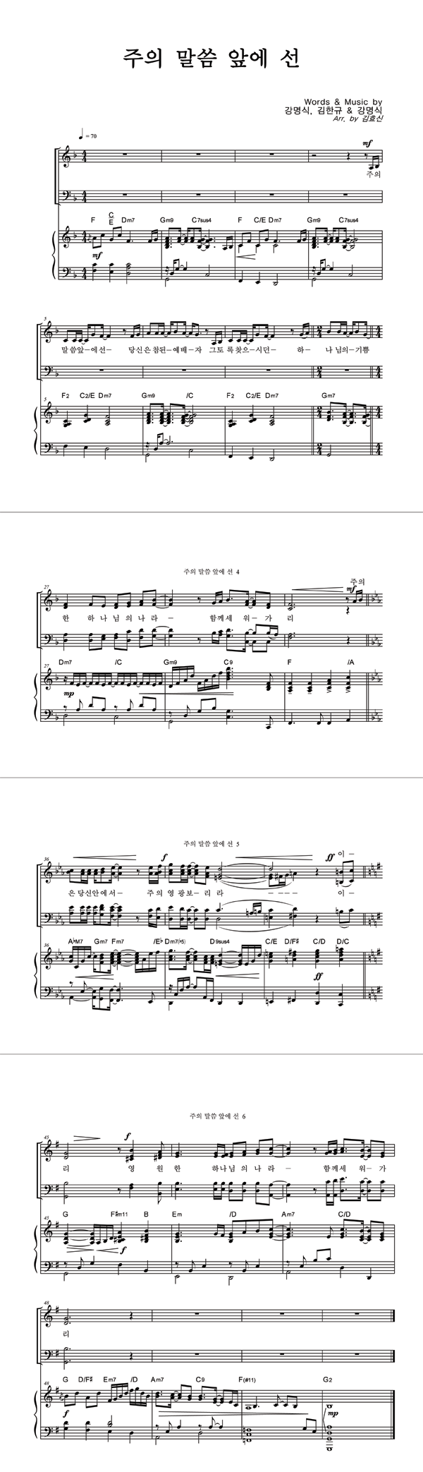 | 주의 말씀 앞에 선 | 성가 4부 + 피아노 반주 |