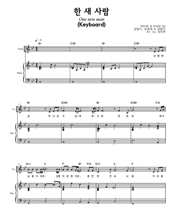 | 새 노래로 주 찬양해 | 성가 4부 + 피아노 반주 |