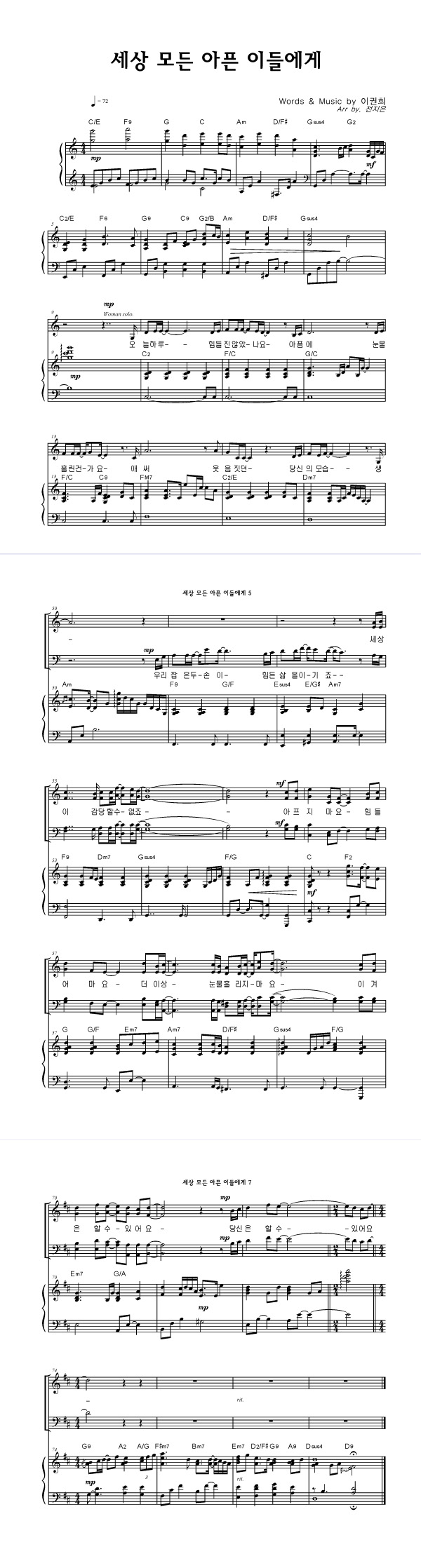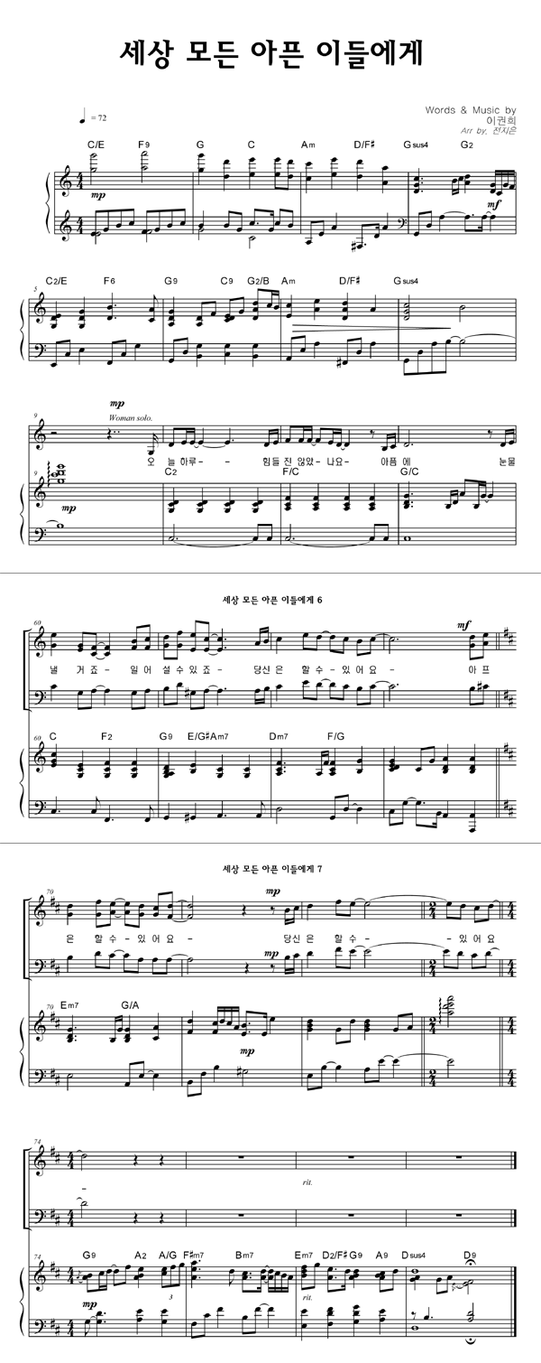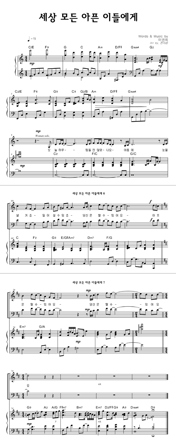 | 세상 모든 아픈 이들에게 | 성가 3부 + 피아노 반주 |