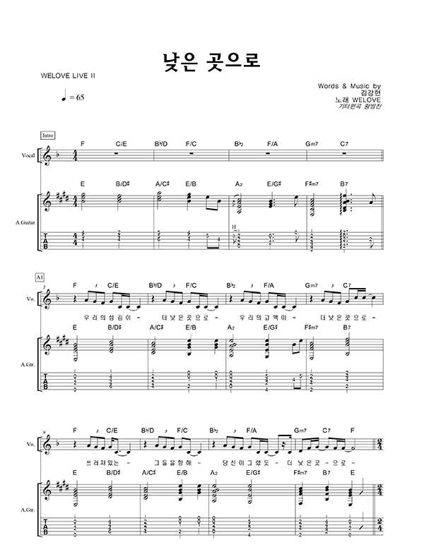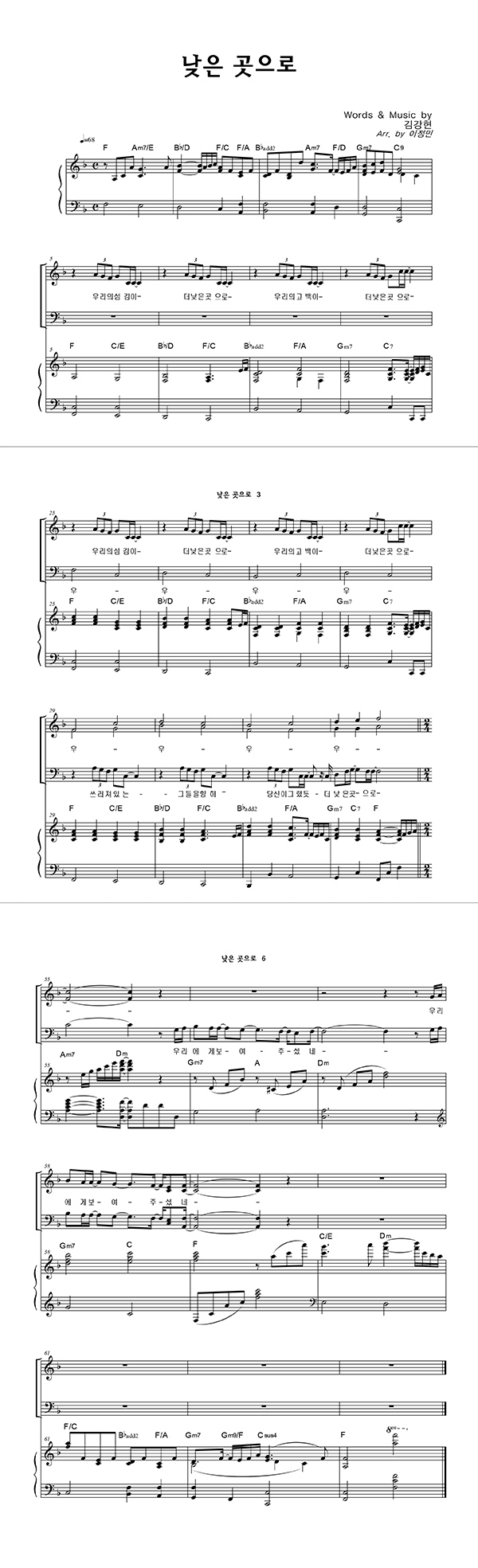 | 낮은 곳으로 | 성가 2부 + 피아노 반주 |