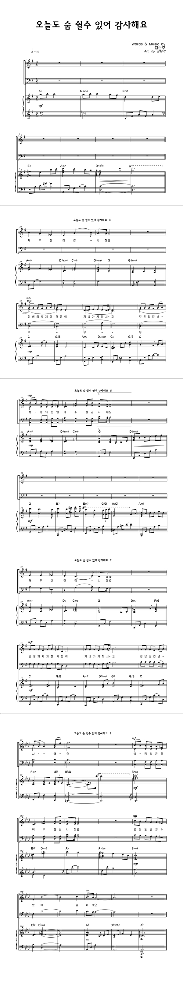 '오늘도 숨 쉴수 있어 감사해요' 의 다른 악보형식