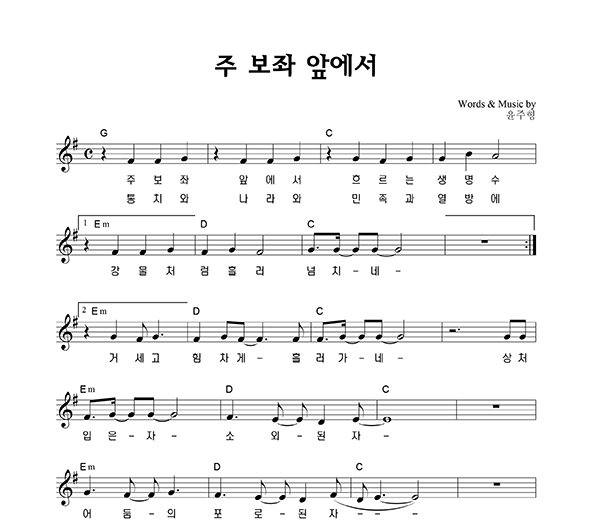 '주보좌앞에서' 의 다른 악보형식