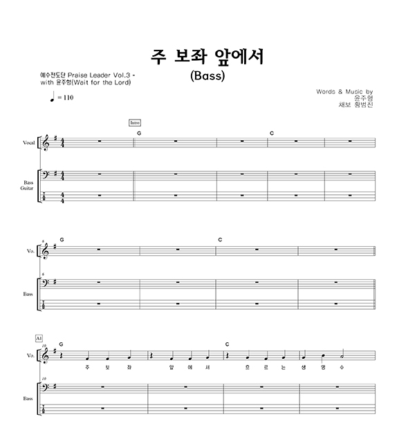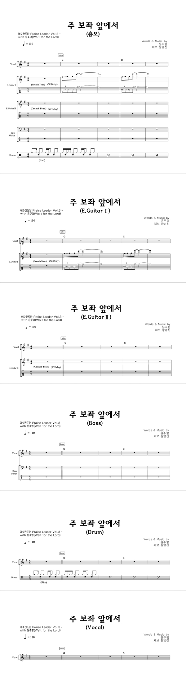 '예수전도단 Praise Leader Vol.3 - with 윤주형 (Wait for the Lord)' 의 다른 악보