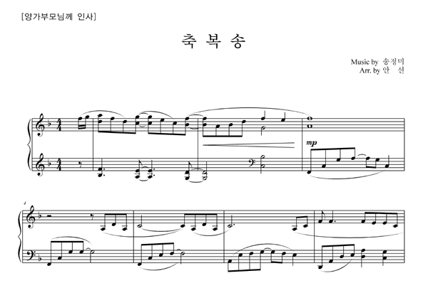 | 축복송 | 성가 2부 + 피아노 반주 |