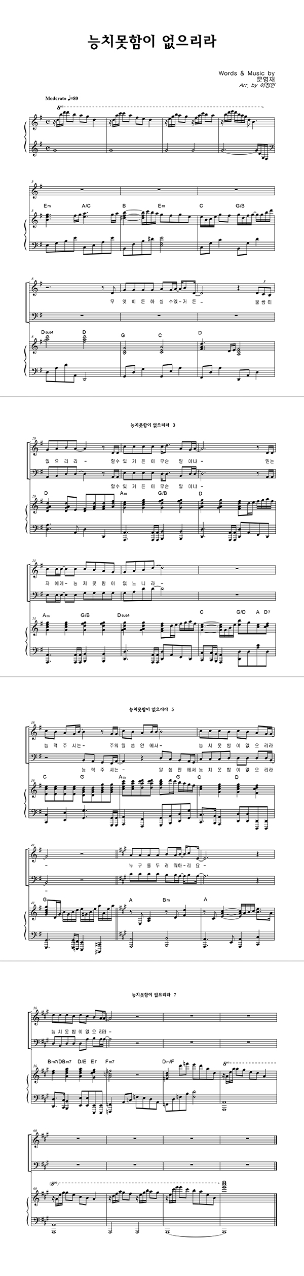 | 능치 못함이 없으리라 | 성가 4부 + 피아노 반주 |