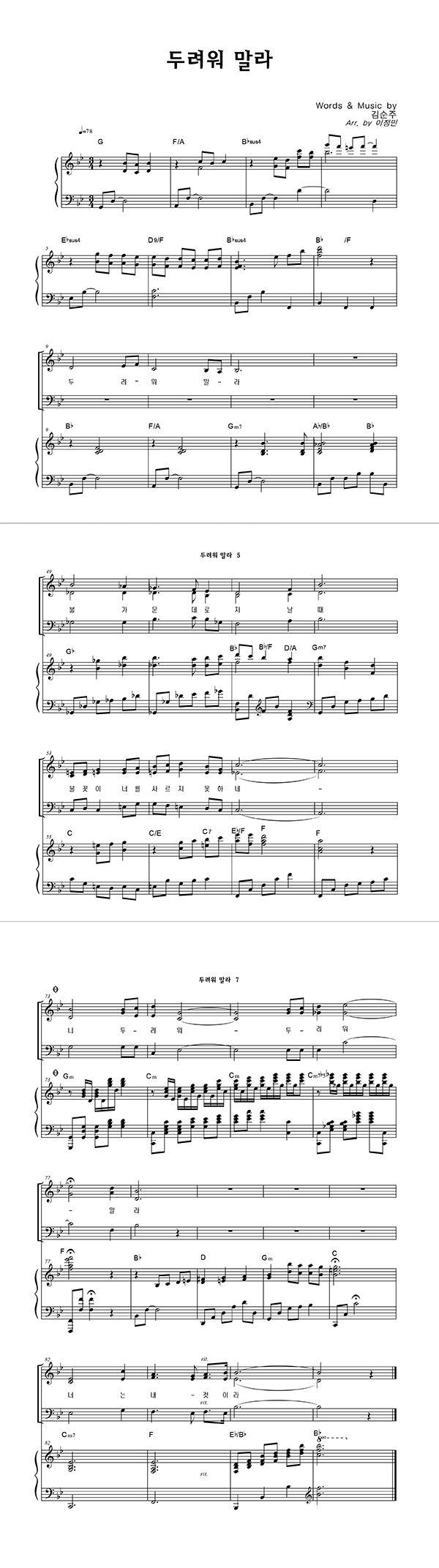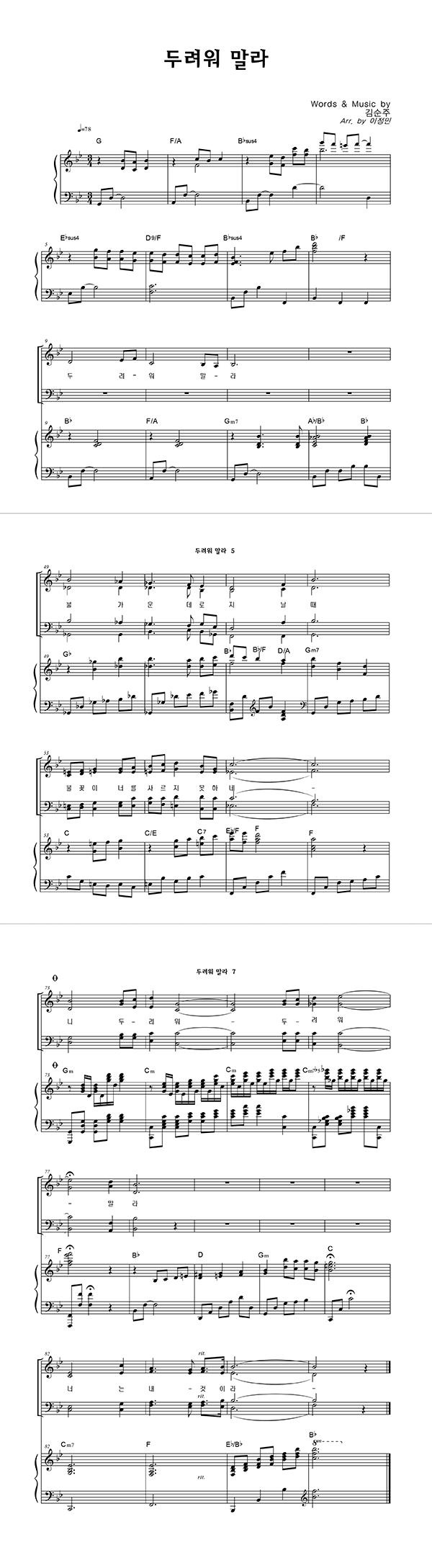 '두려워 말라' 의 다른 악보형식