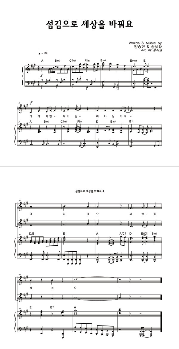 | 섬김으로 세상을 바꿔요 | 단선 |