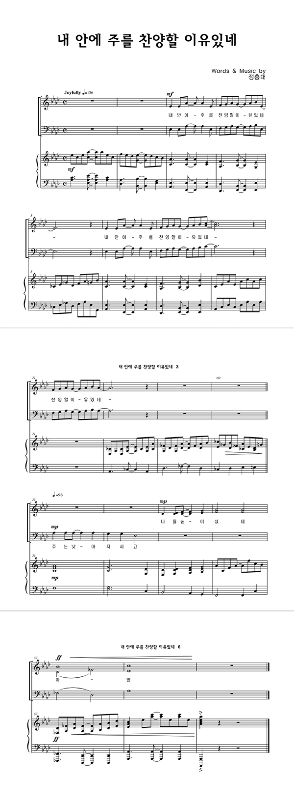 '내 안에 주를 찬양할 이유 있네' 의 다른 악보형식