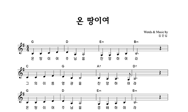 '온 땅이여' 의 다른 악보형식