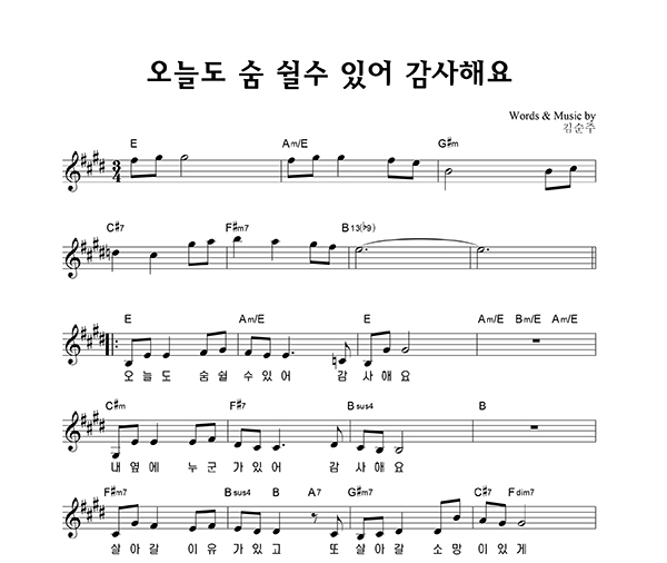 '오늘도 숨 쉴수 있어 감사해요' 의 다른 악보형식