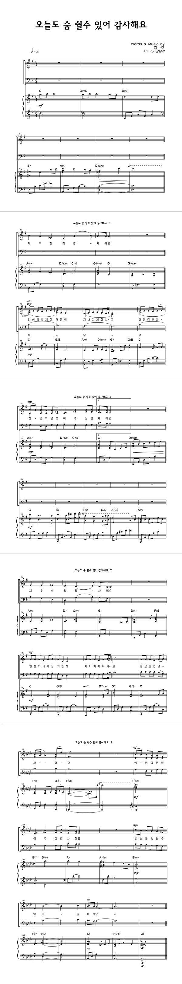 '오늘도 숨 쉴수 있어 감사해요' 의 다른 악보형식