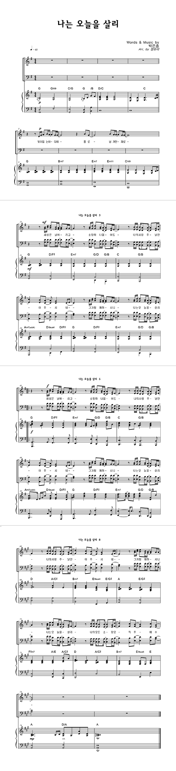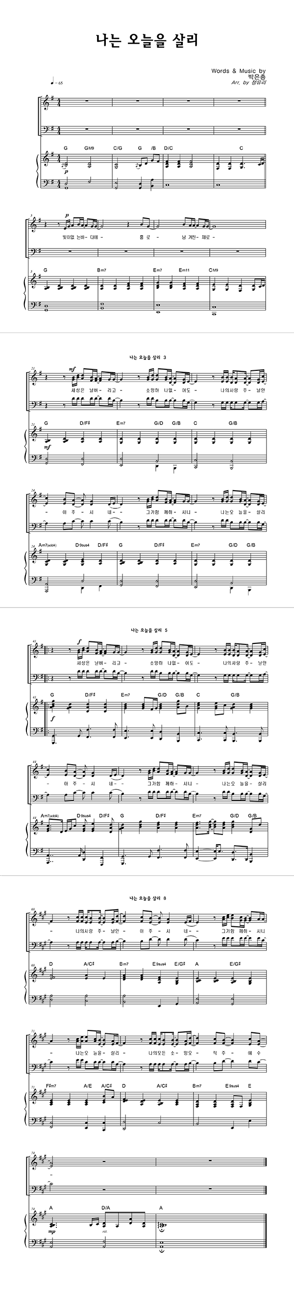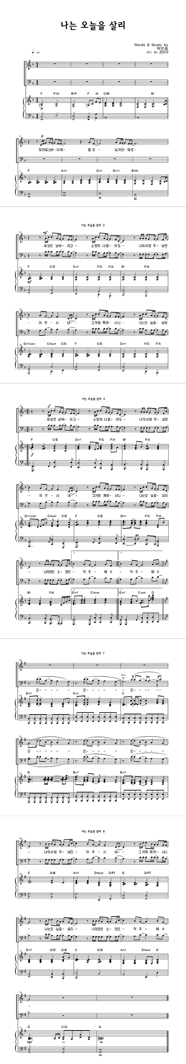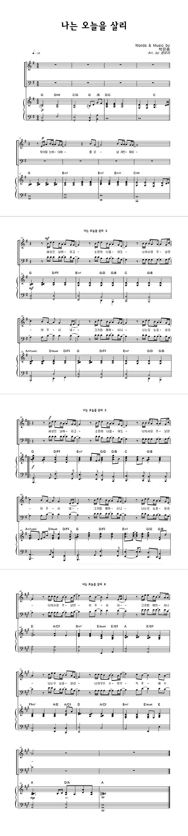 | 나는 오늘을 살리 | 성가 3부 + 피아노 반주 |