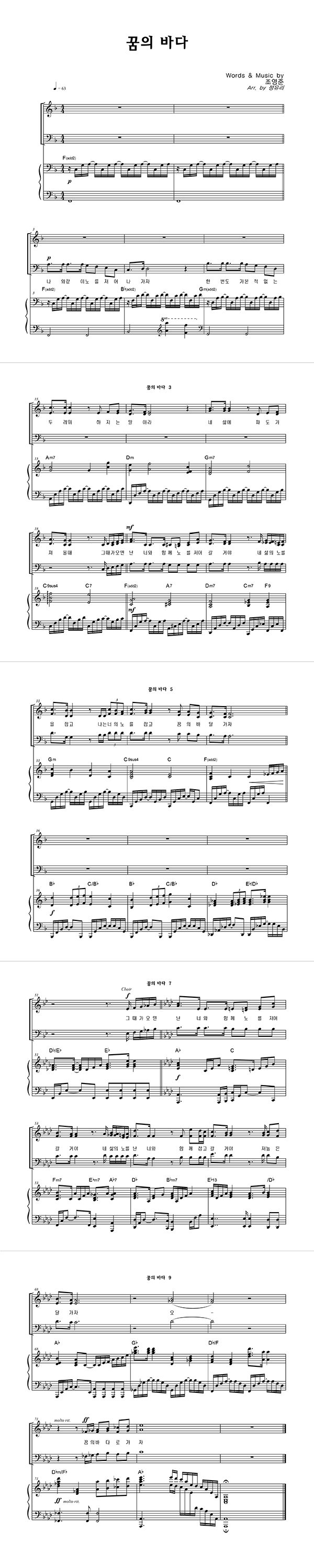 '꿈의 바다' 의 다른 악보형식