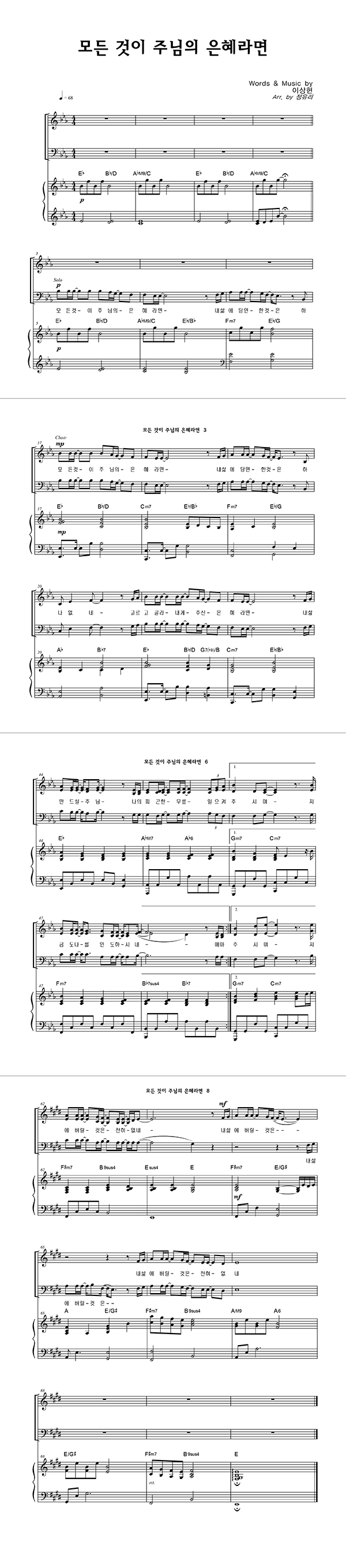 | 모든것이 주님의 은혜 | 성가 3부 + 피아노 반주 |