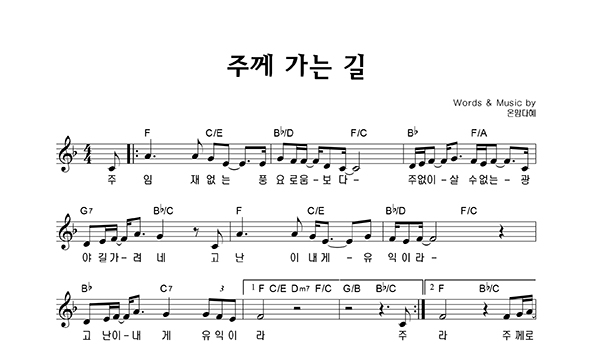| 주께 가는 길 | 성가 4부 + 피아노 반주 |