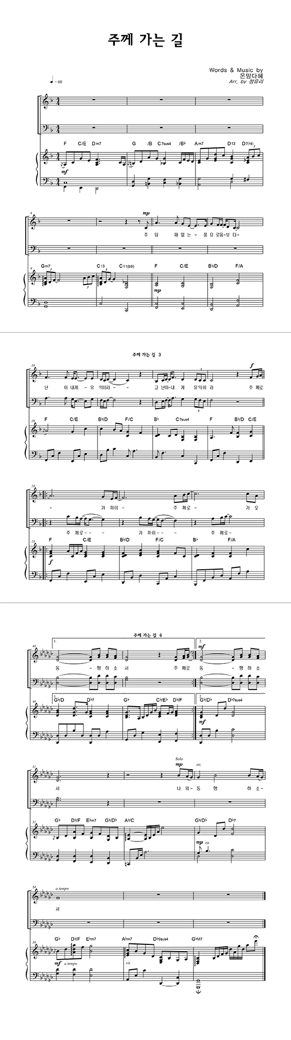 | 주께 가는 길 | 성가 3부 + 피아노 반주 |