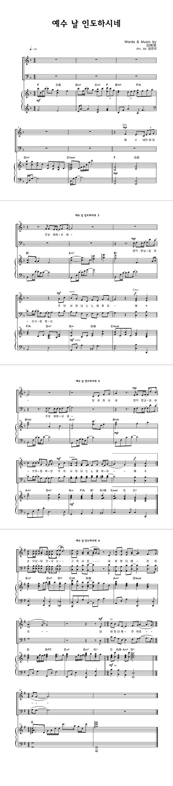 | 예수 날 인도하시네 | 성가 3부 + 피아노 반주 |