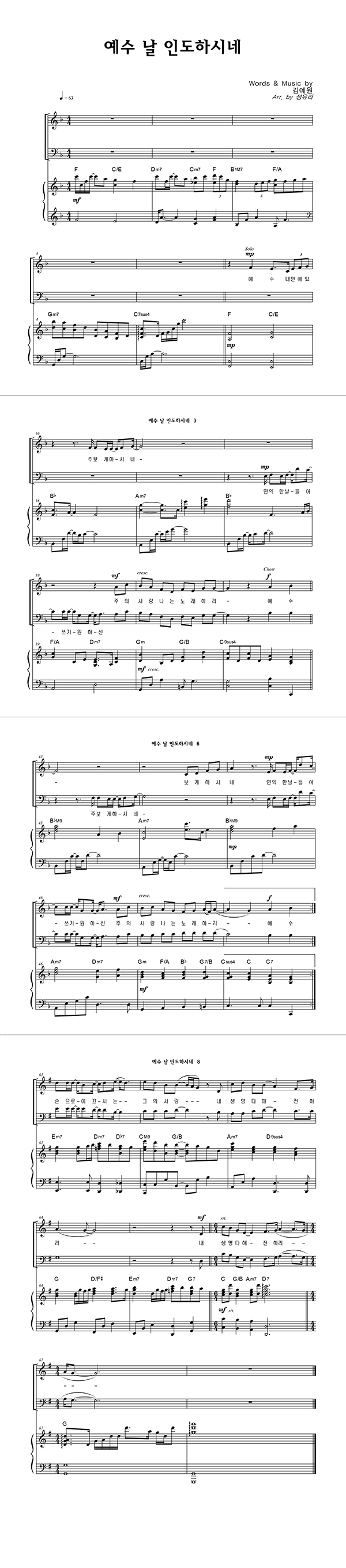 | 예수 날 인도하시네 | 성가 3부 + 피아노 반주 |