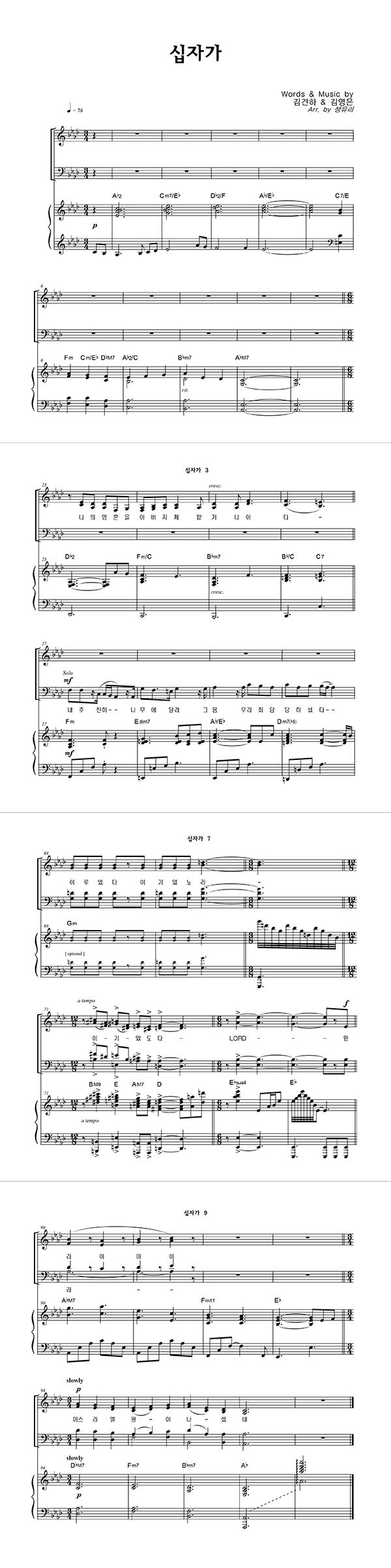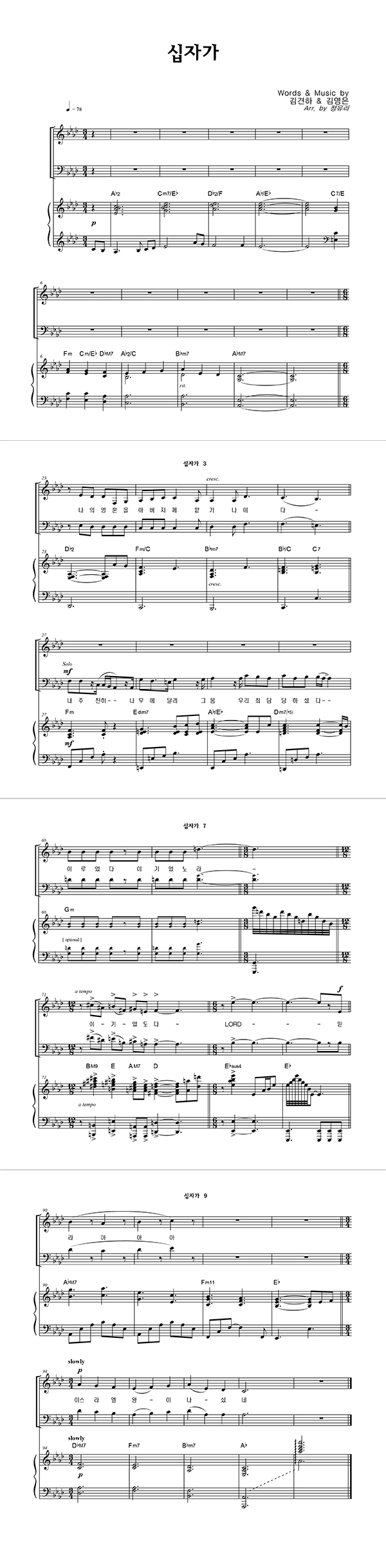 | 십자가 | 성가 2부 + 피아노 반주 |