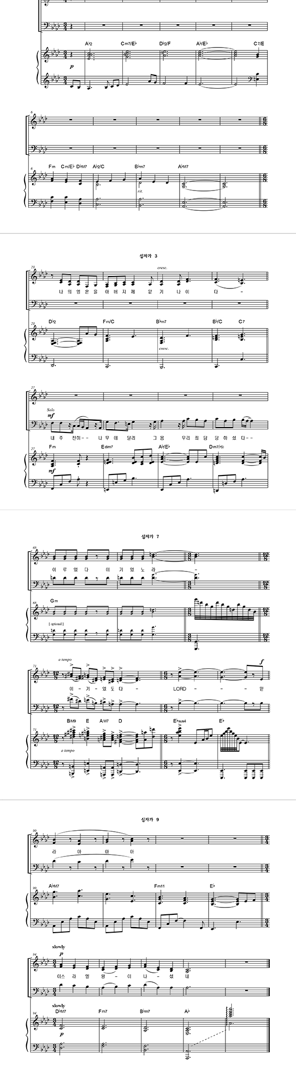| 십자가 | 성가 3부 + 피아노 반주 |