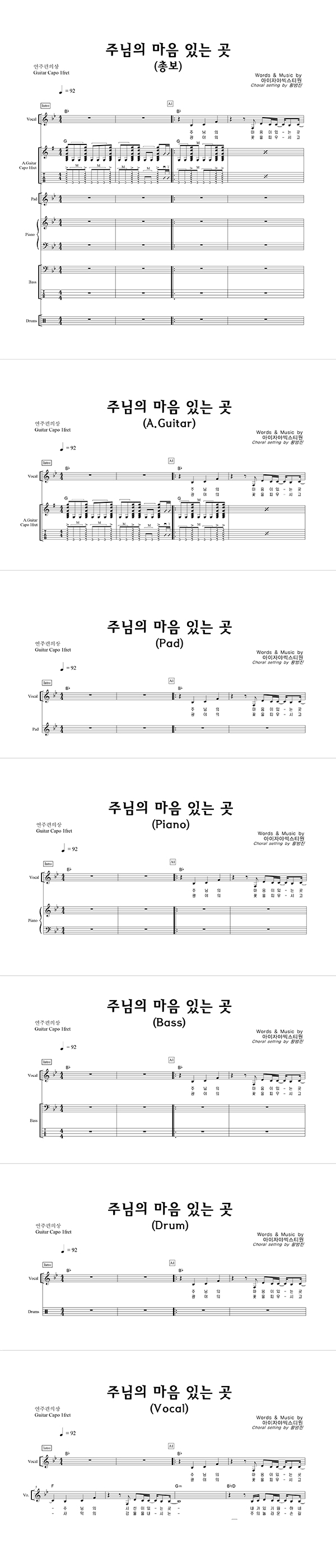 '주님의 마음 있는 곳' 의 다른 악보형식