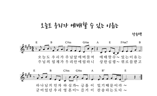 | 오늘도 우리가 예배할 수 있는 이유는 | 성가 4부 + 피아노 반주 |