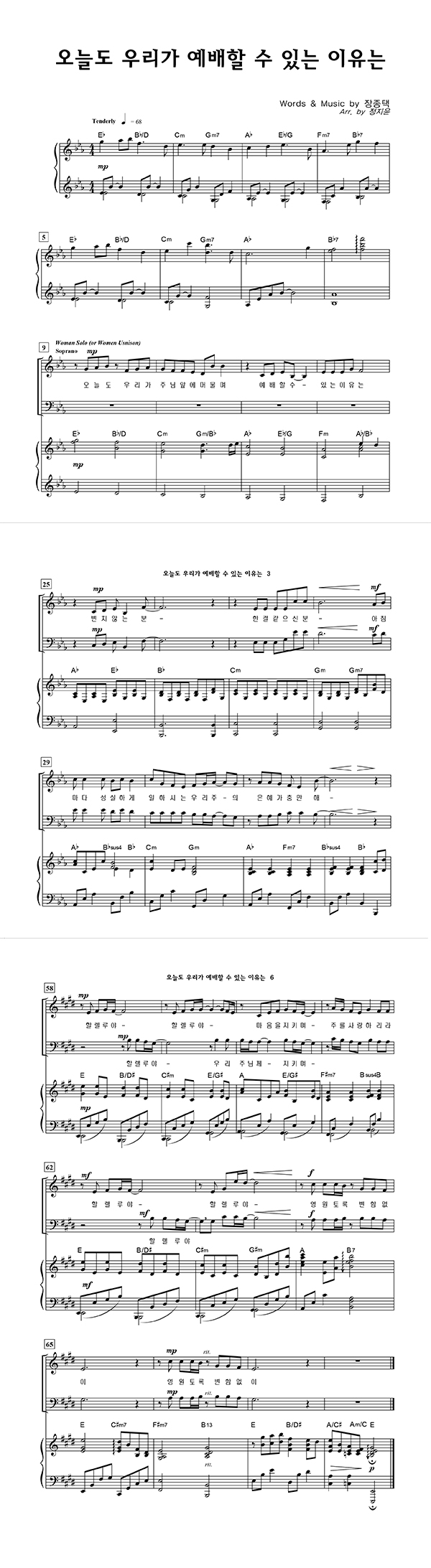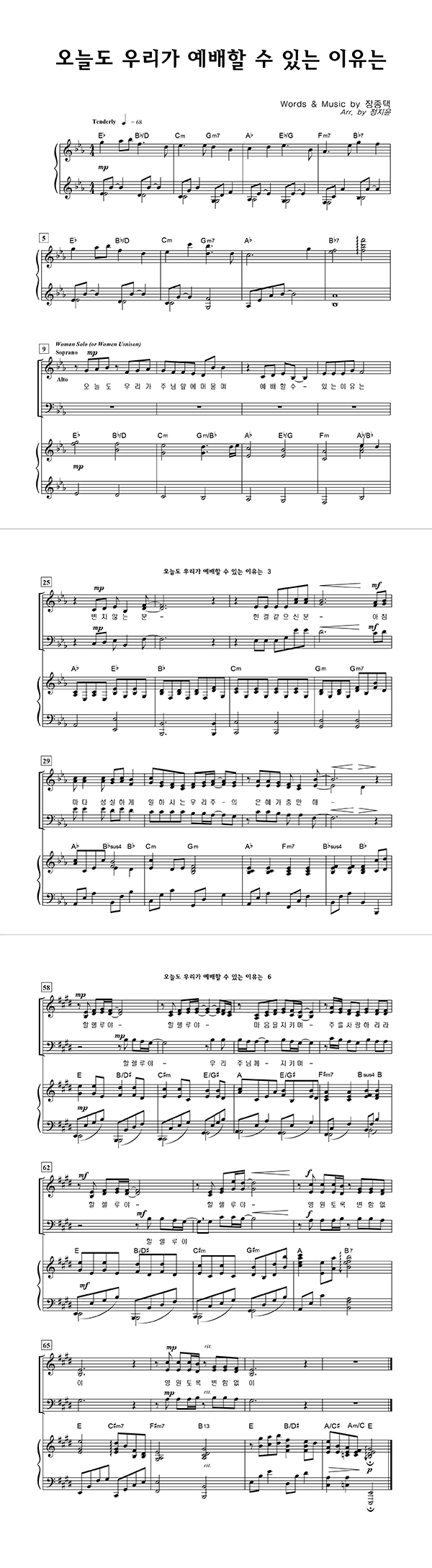 | 오늘도 우리가 예배할 수 있는 이유는 | 성가 4부 + 피아노 반주 |
