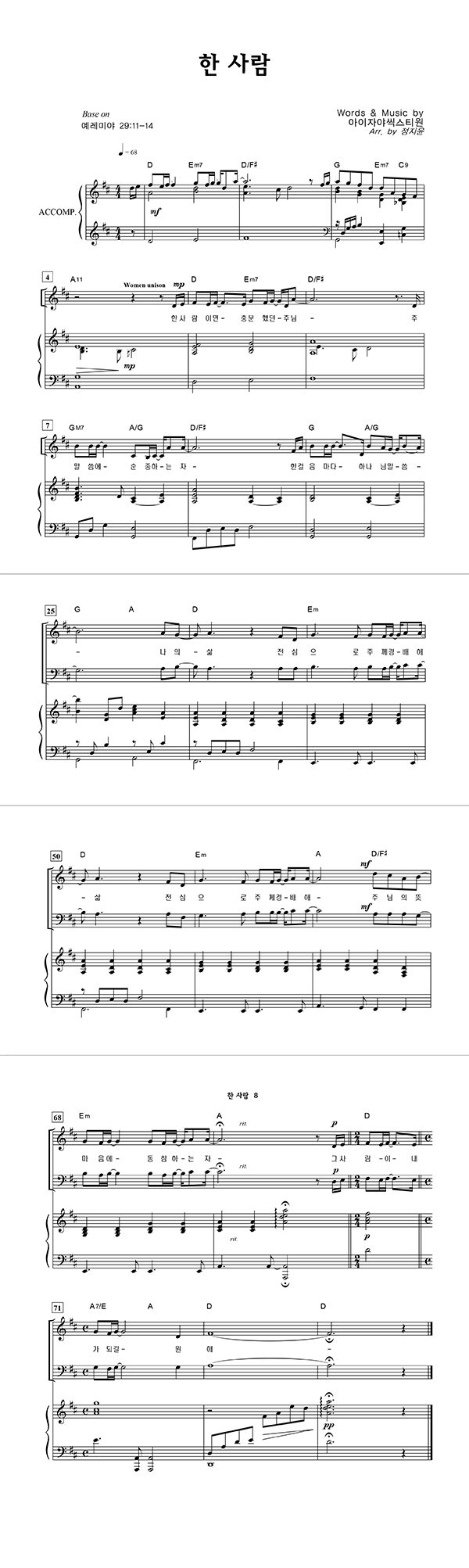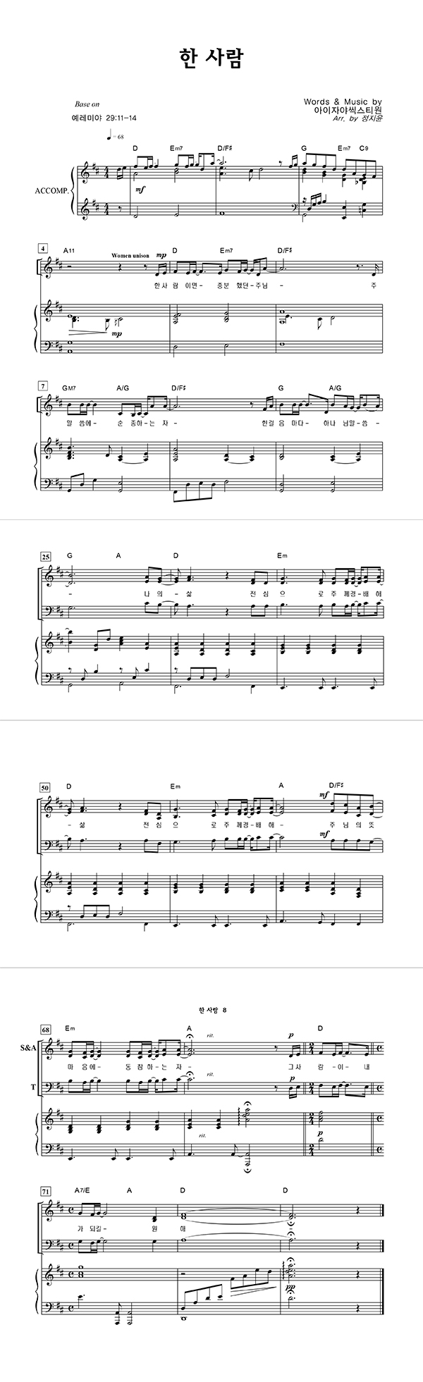 | 한 사람 | 성가 2부 + 피아노 반주 |