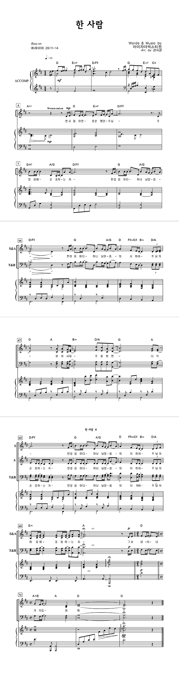 | 한 사람 | 성가 4부 + 피아노 반주 |