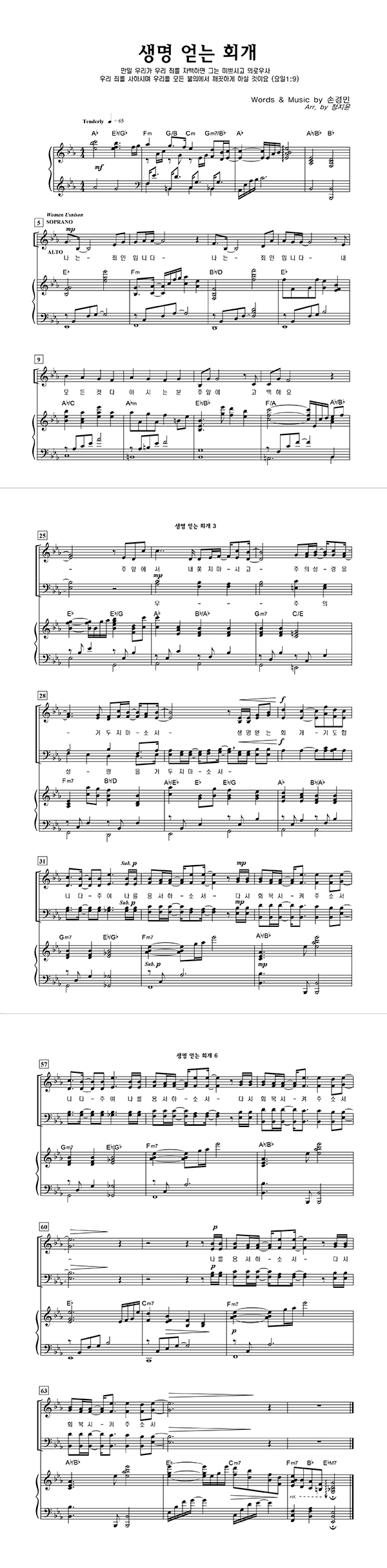 | 생명 얻는 회개 | 성가 3부 + 피아노 반주 |
