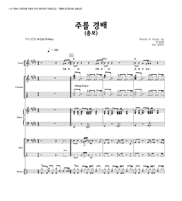 | 주를 경배 | 성가 4부 + 피아노 반주 |