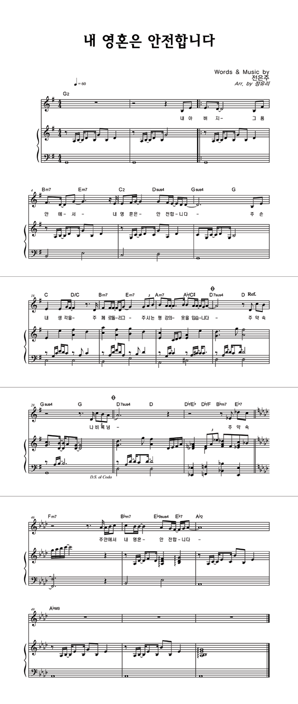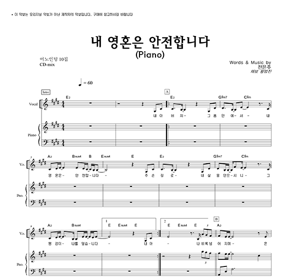 | 내 영혼은 안전합니다 | 성가 2부 + 피아노 반주 |