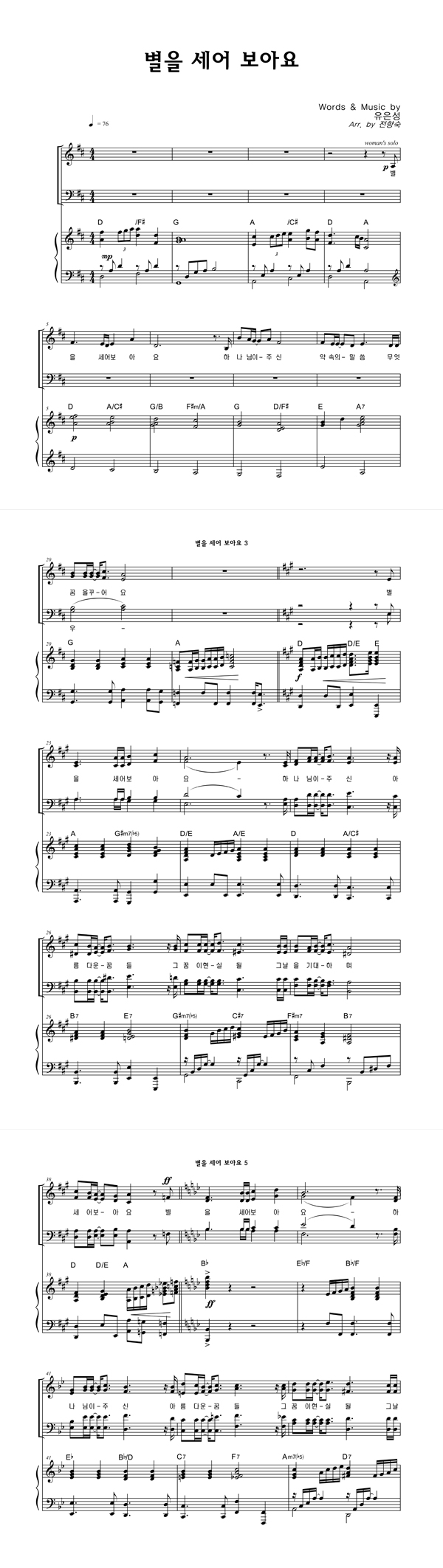 | 별을 세어 보아요 | 성가 3부 + 피아노 반주 |