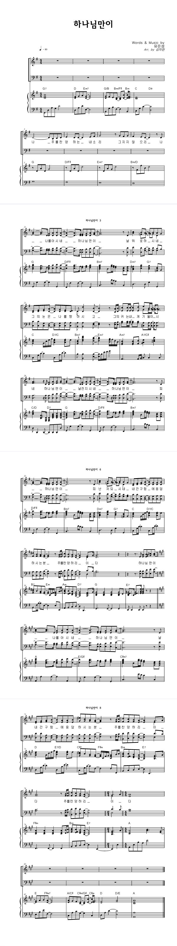 | 하나님만이 | 성가 4부 + 피아노 반주 |