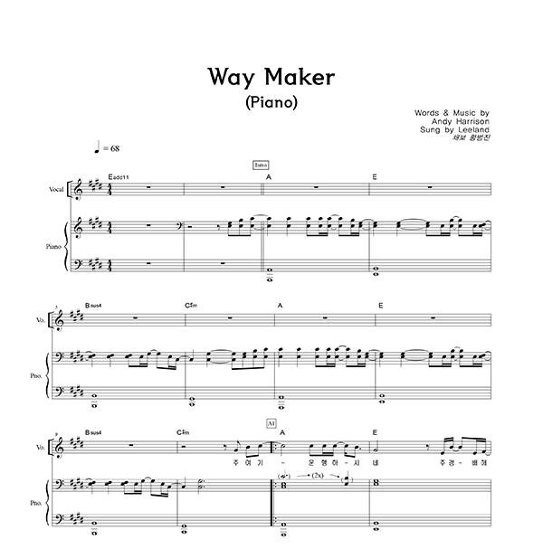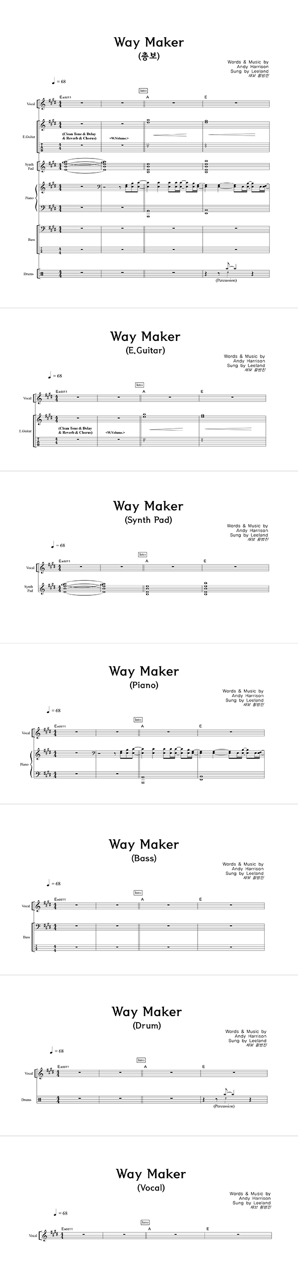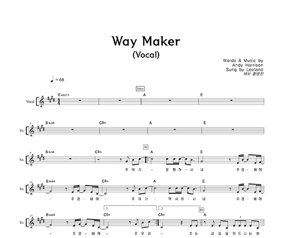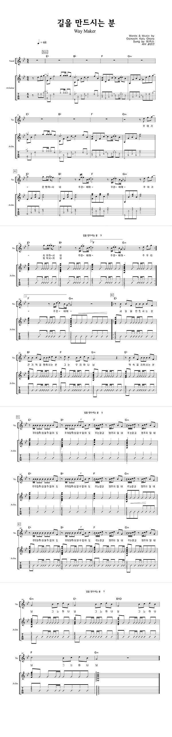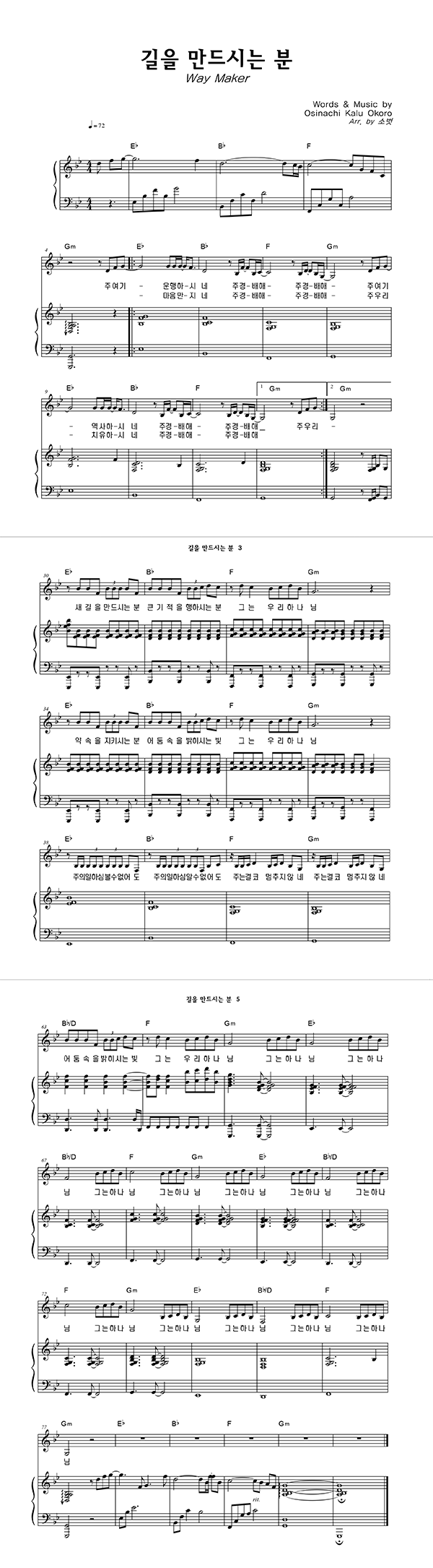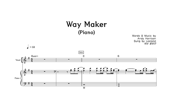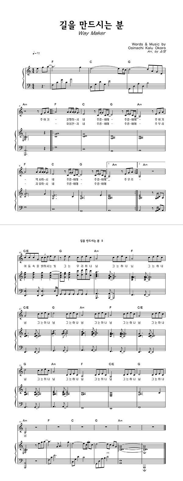 'Way Maker (길을 만드시는 분)' 의 다른 악보형식