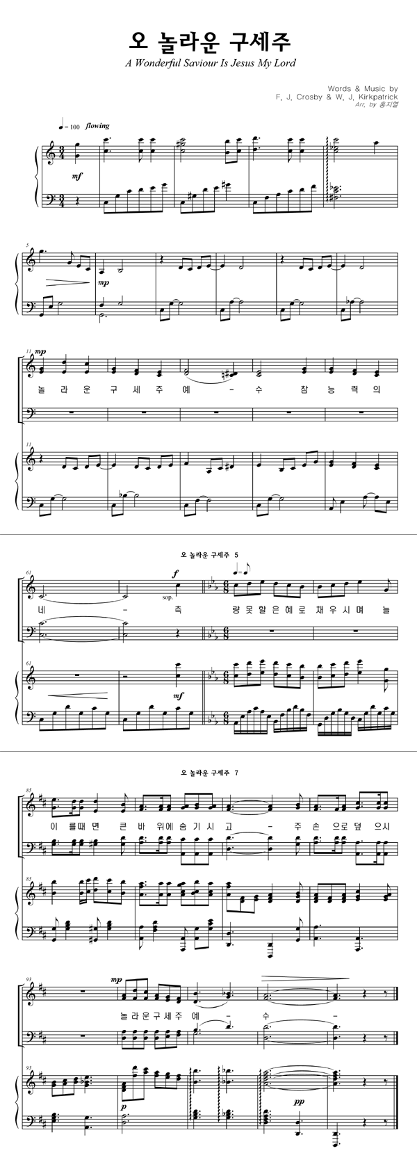 | 오 놀라운 구세주 | 성가 4부 + 피아노 반주 |