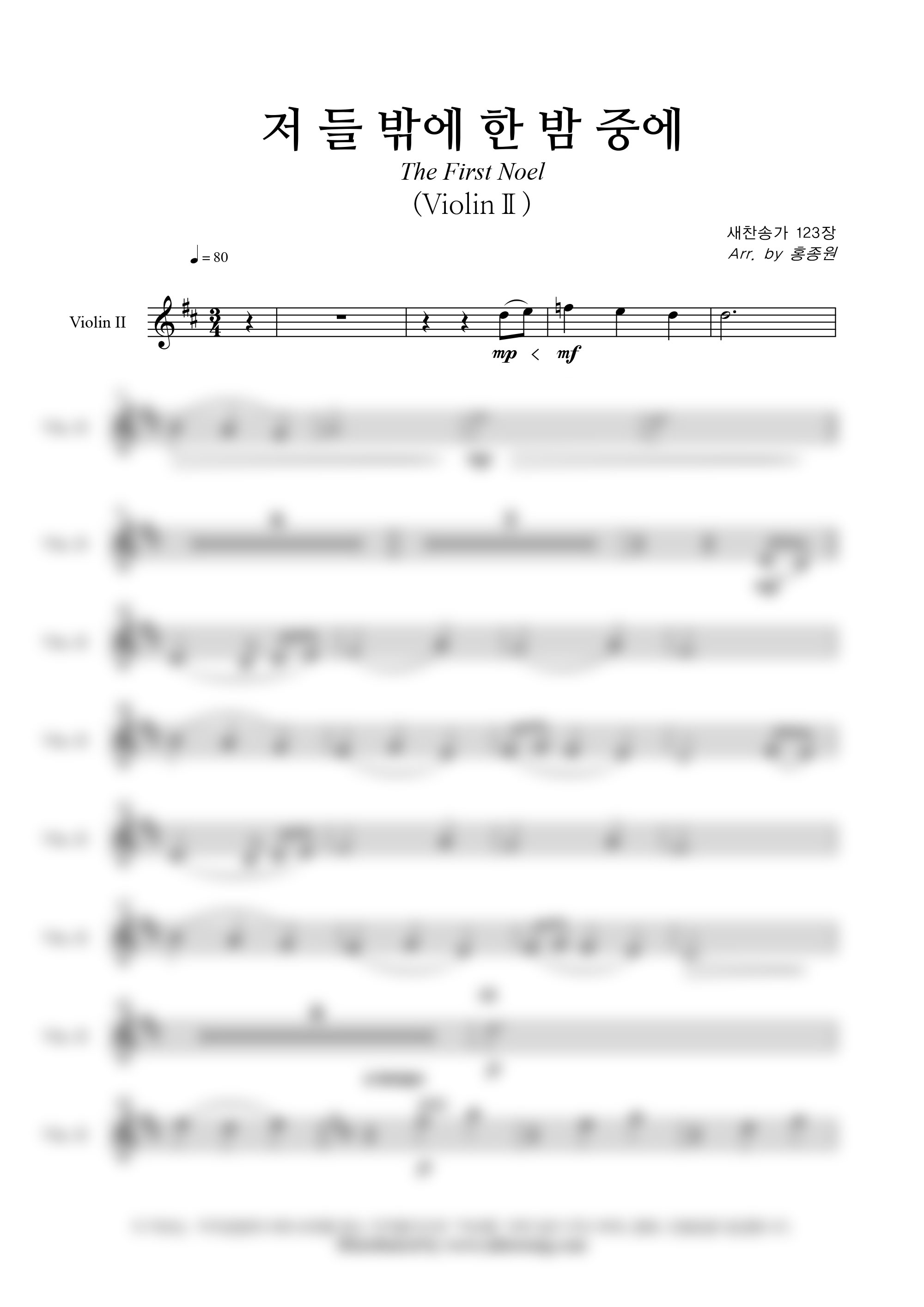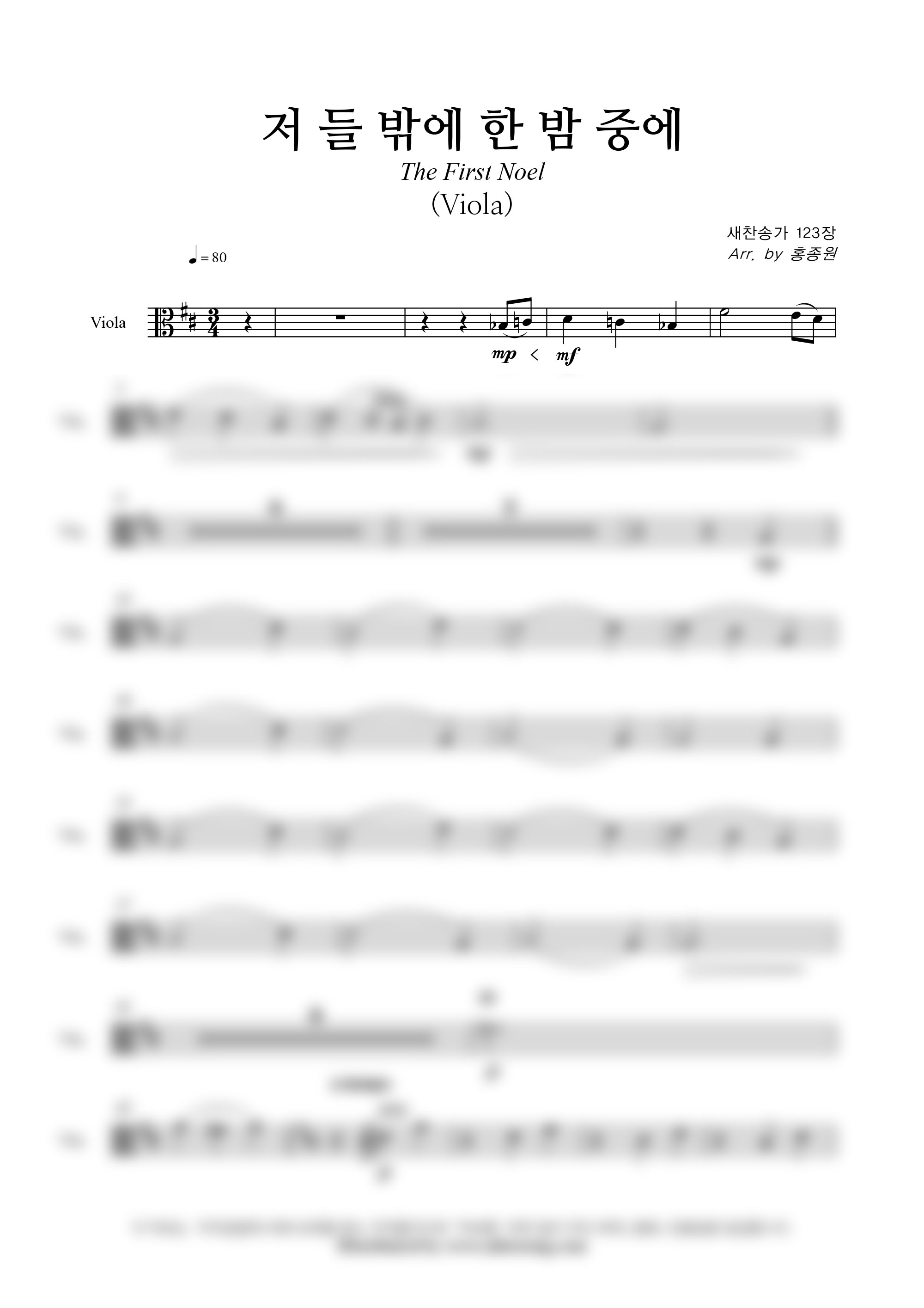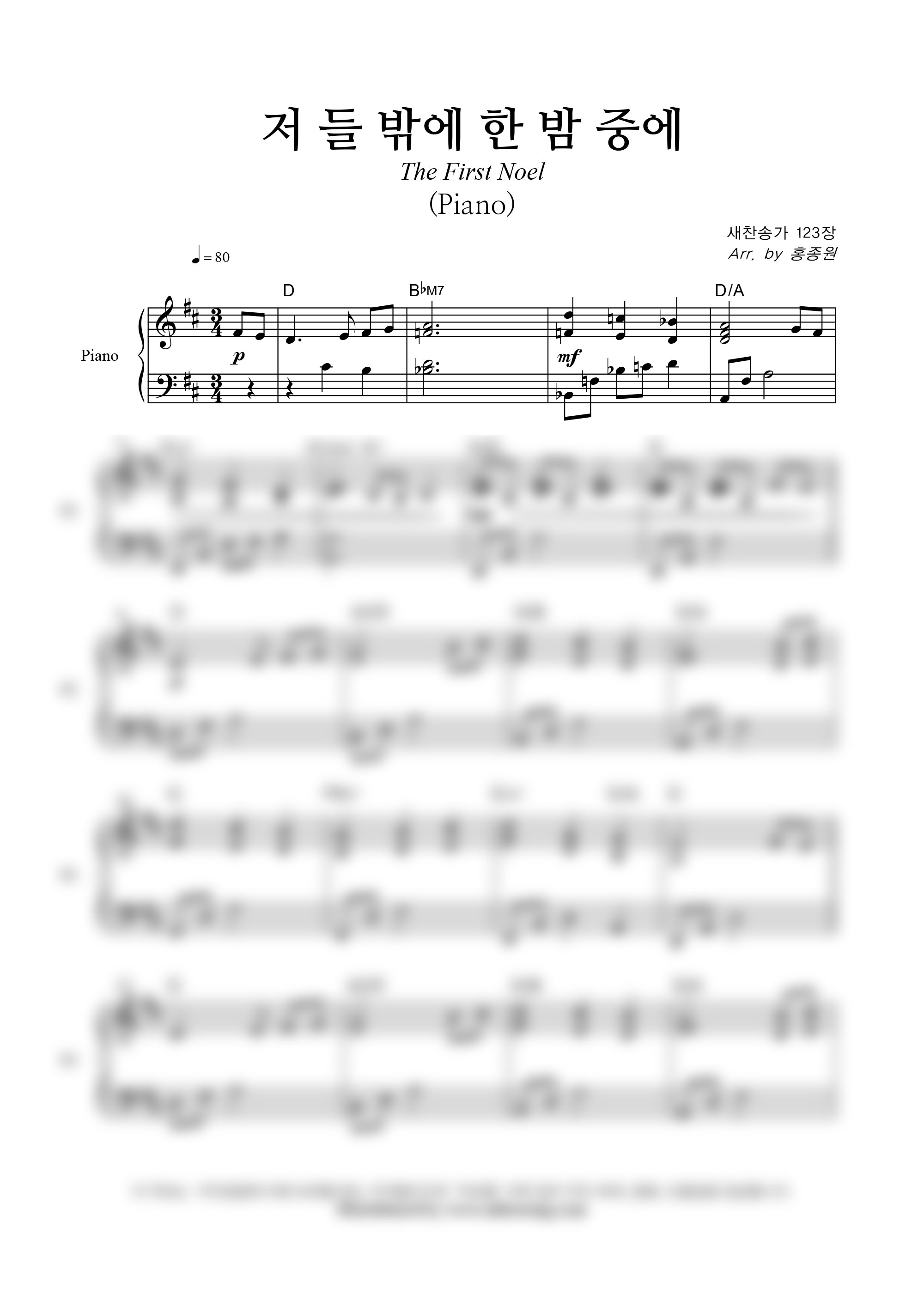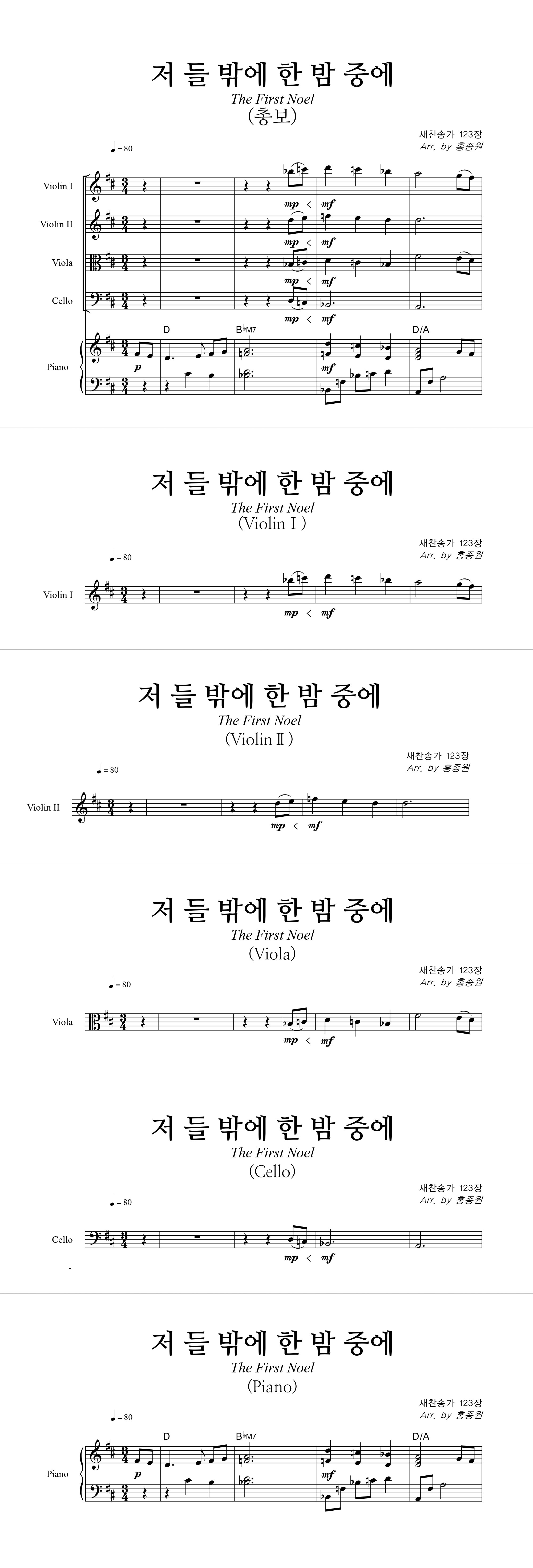'저 들 밖에 한밤중에' 의 다른 악보형식