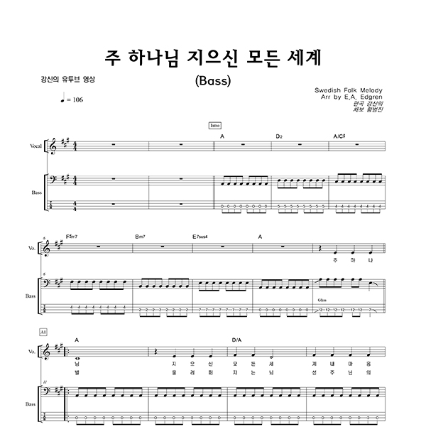 '주 하나님 지으신 모든 세계' 의 다른 악보형식