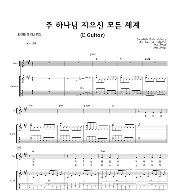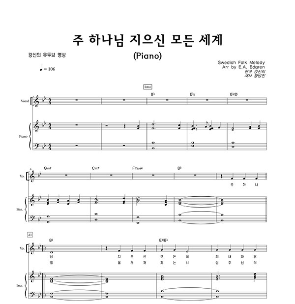 '주 하나님 지으신 모든 세계' 의 다른 악보형식