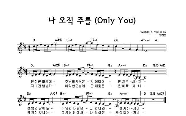 | 나 오직 주를 (인도 : 소진영) | 성가 4부 + 피아노 반주 |
