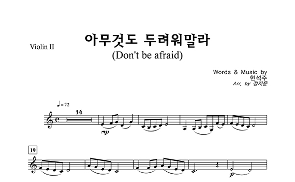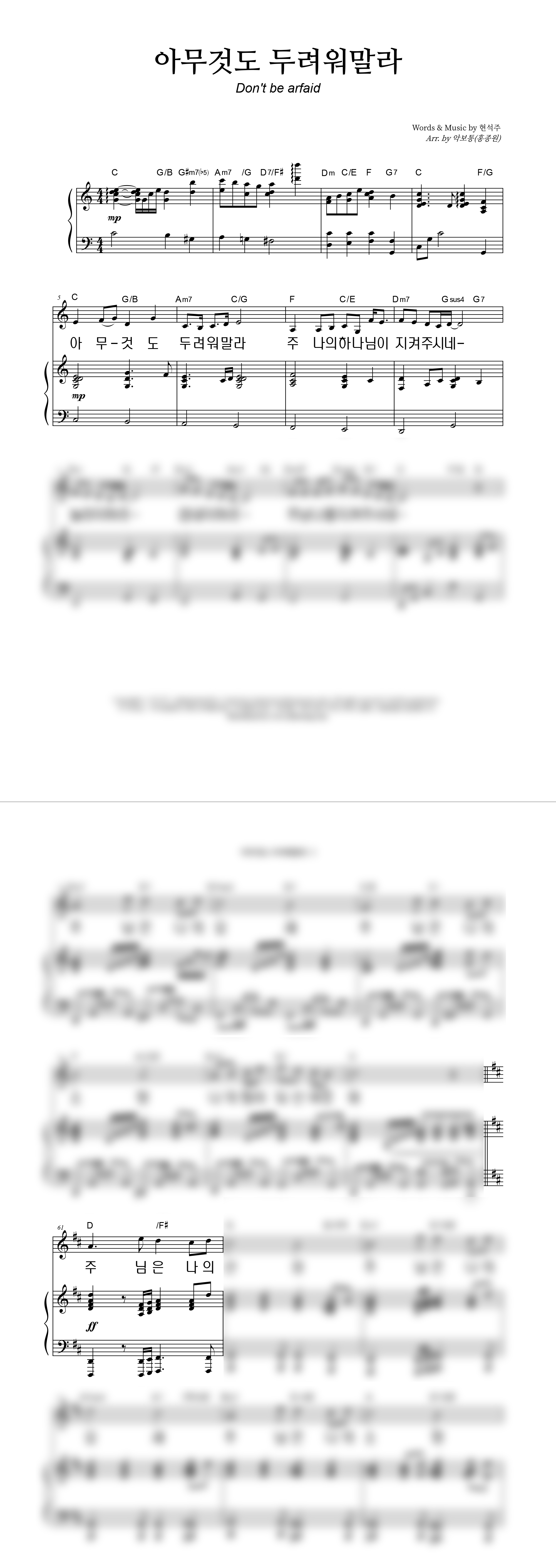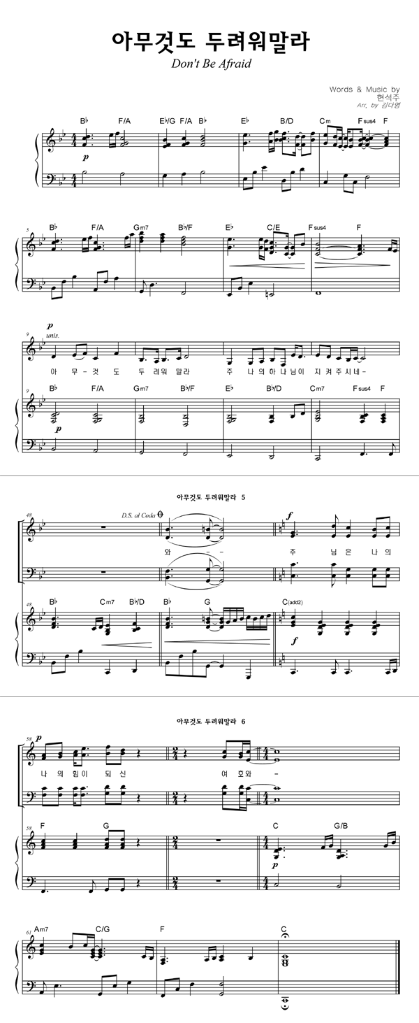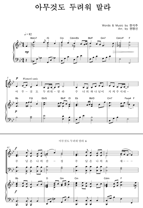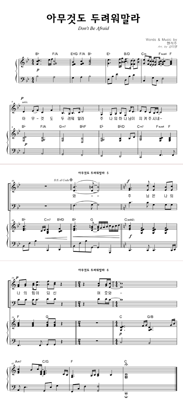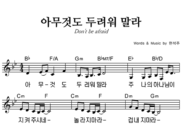 '아무 것도 두려워 말라' 의 다른 악보형식