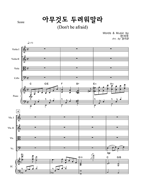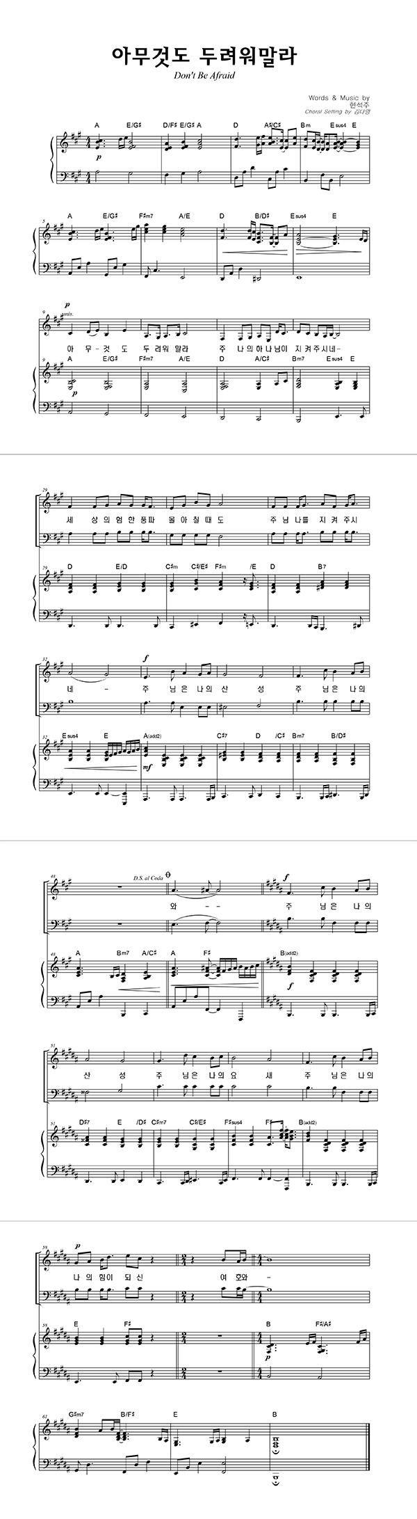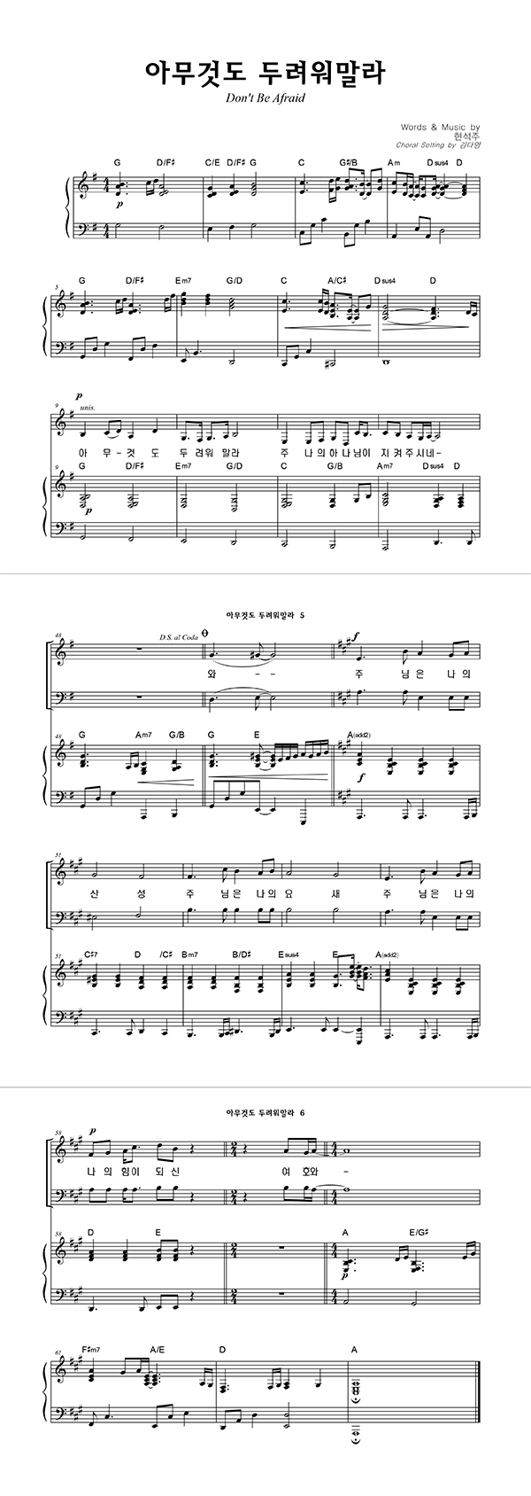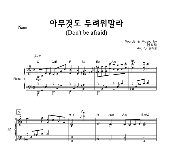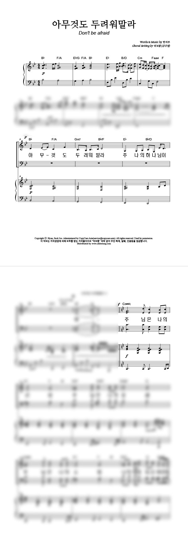 '아무 것도 두려워 말라' 의 다른 악보형식