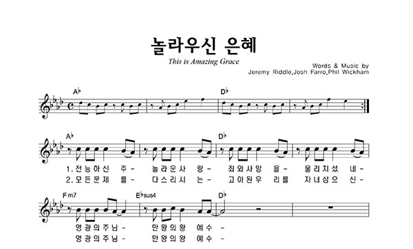 '놀라우신 은혜' 의 다른 악보형식