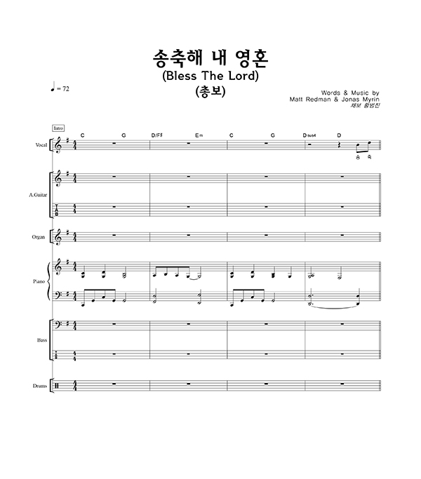 '송축해 내 영혼' 의 다른 악보형식